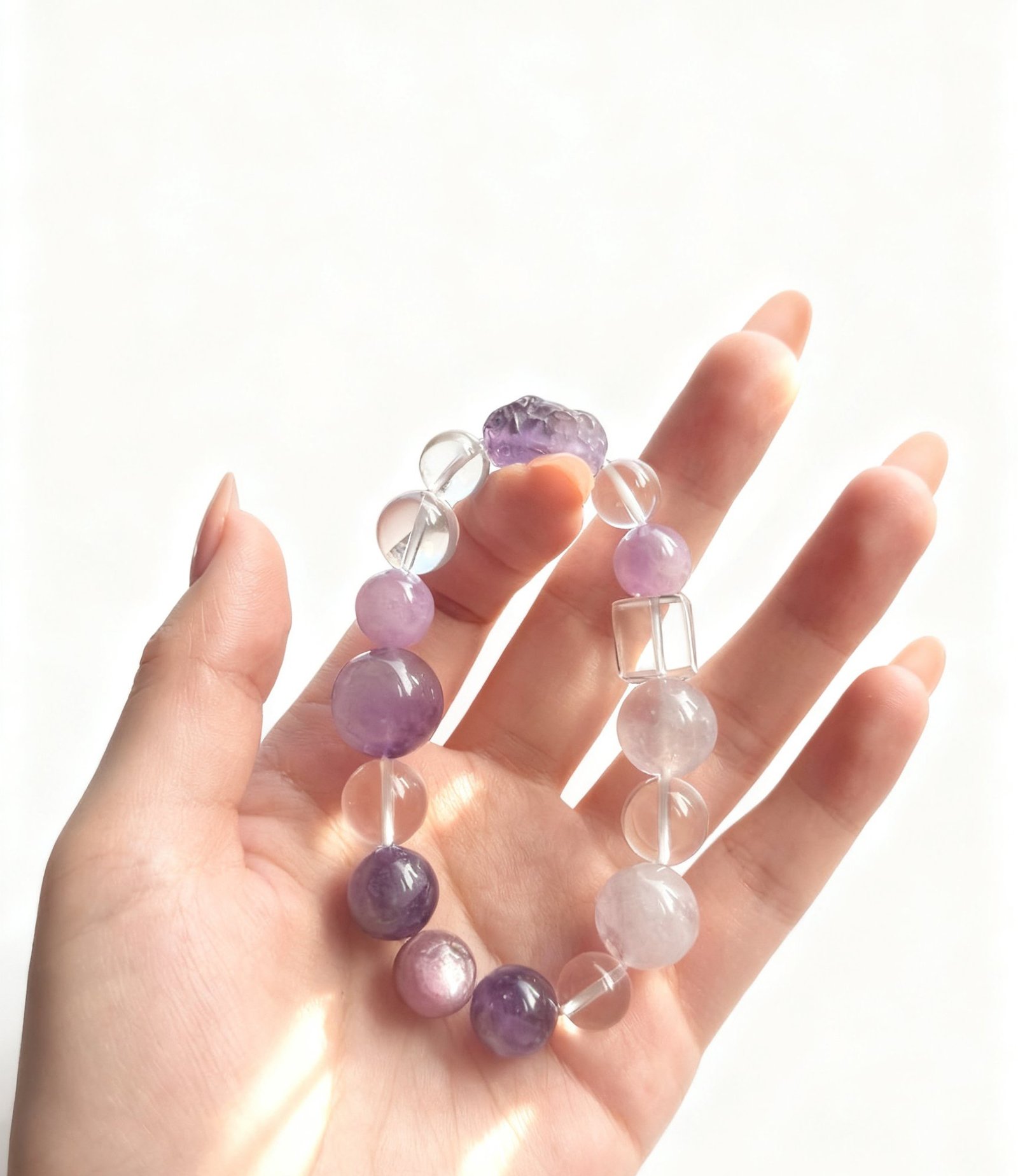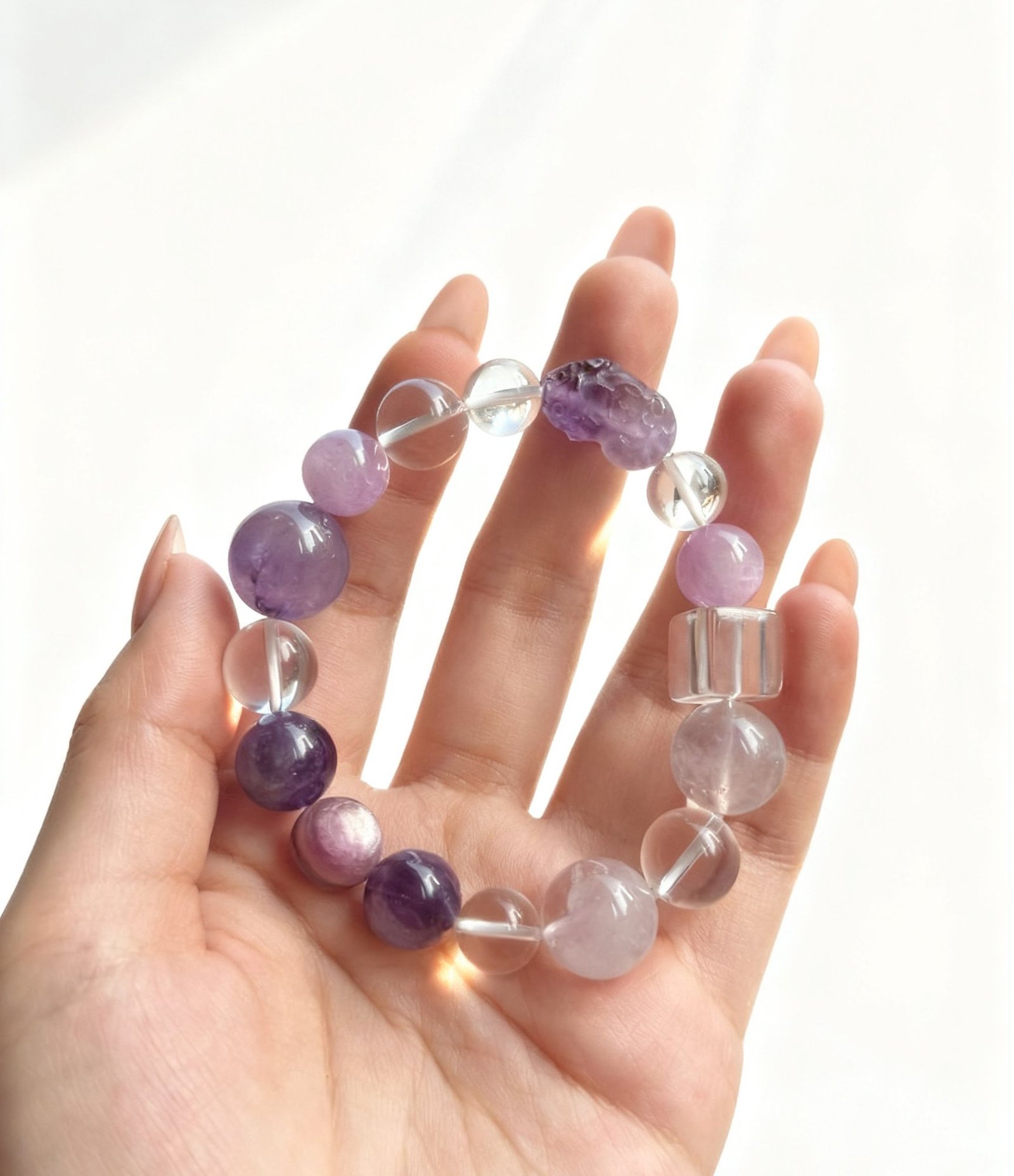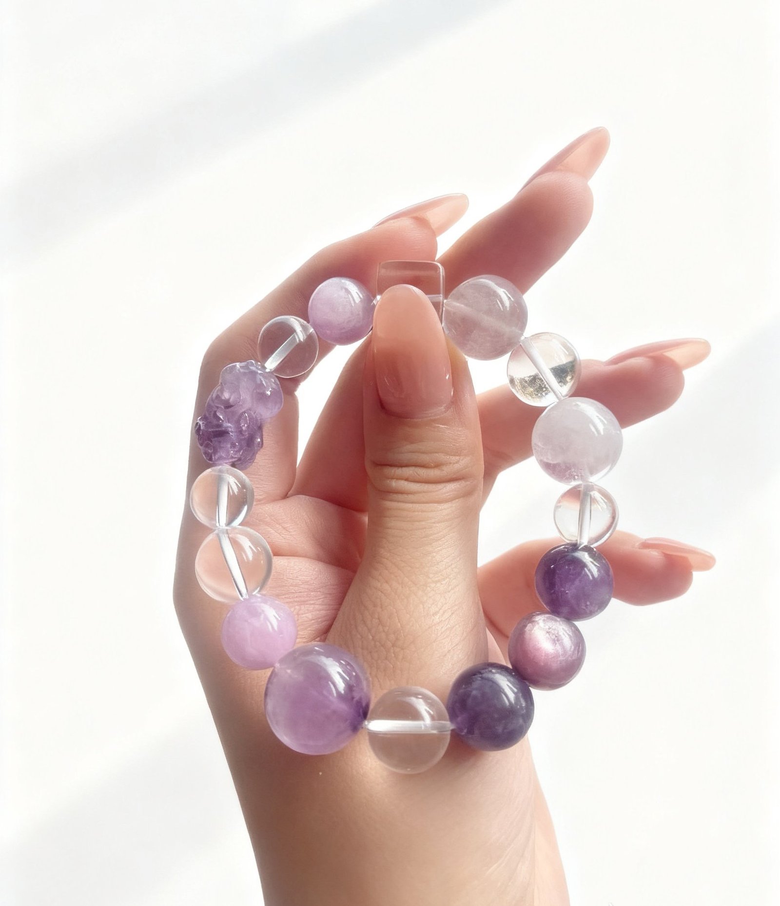 •Lepidolite (紫锂灰) — Relieves stress, encourages emotional healing, and connects to higher consciousness.